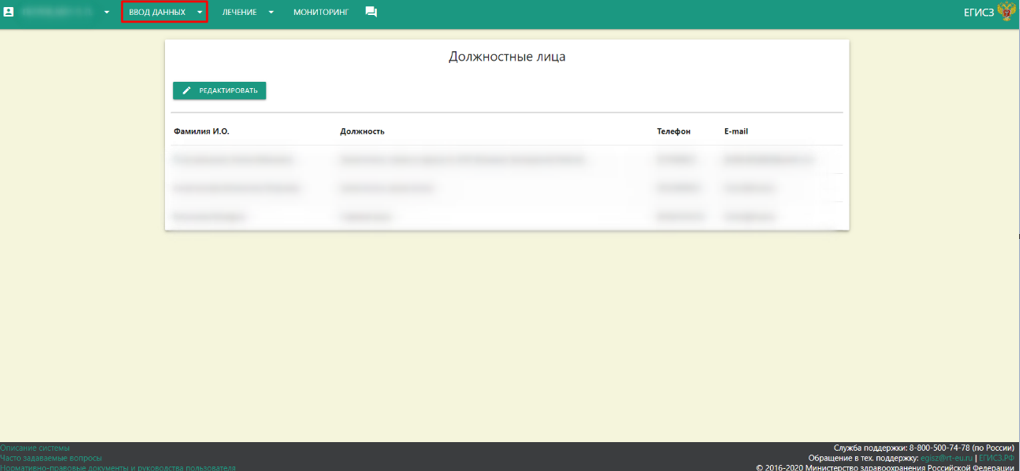 Для добавления должностного лица необходимо нажать на кнопки «Редактировать»/ «Добавить». Далее необходимо заполнить все обязательные поля: