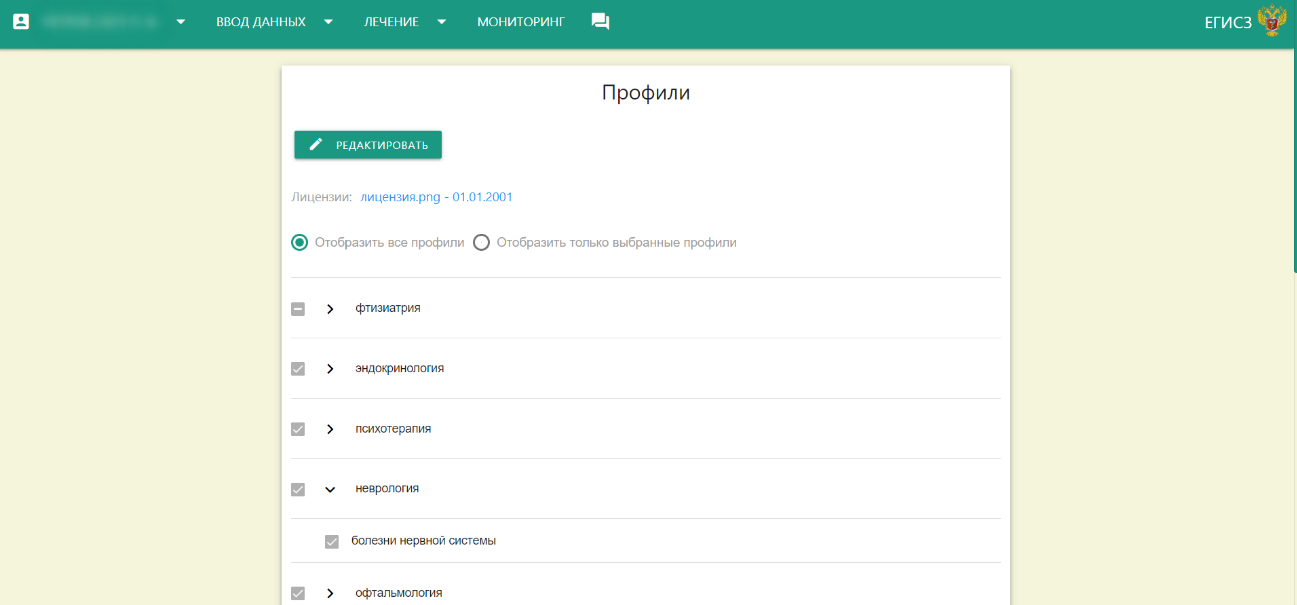 Для добавления профилей необходимо нажать на кнопку «Редактировать», далее – выбрать соответствующие профили посредством указания знака