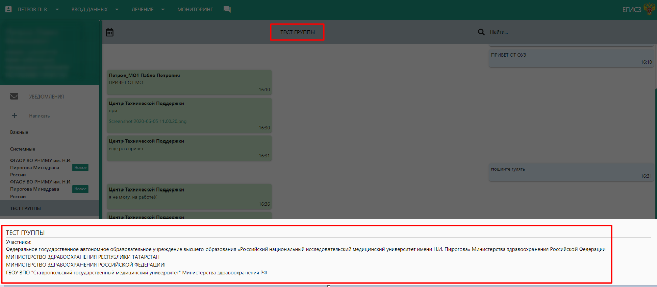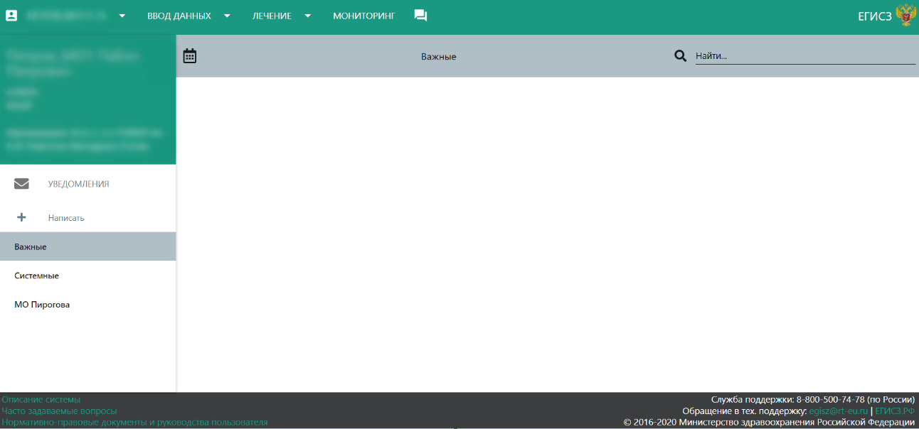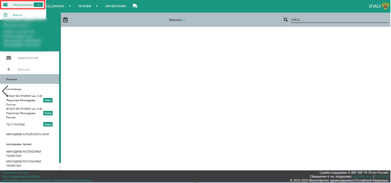 В группу «Важные» поступают уведомления от Службы технической поддержки ЕГИСЗ, в группу «Системные» – уведомления о действиях в Системе других пользователей-участников по тем процессам, над которыми идет совместная работа.