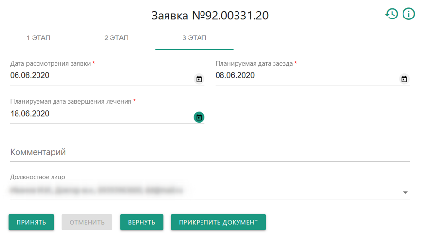 При подтверждении периода лечения направляющей организацией на 3-ем этапе заявка переходит на 4-й этап к сотруднику СКО.