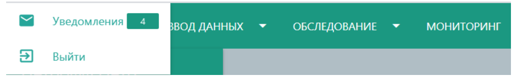 В раздел «Уведомления» можно перейти, нажав на ФИО пользователя в верхнем левом углу.