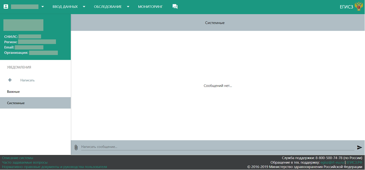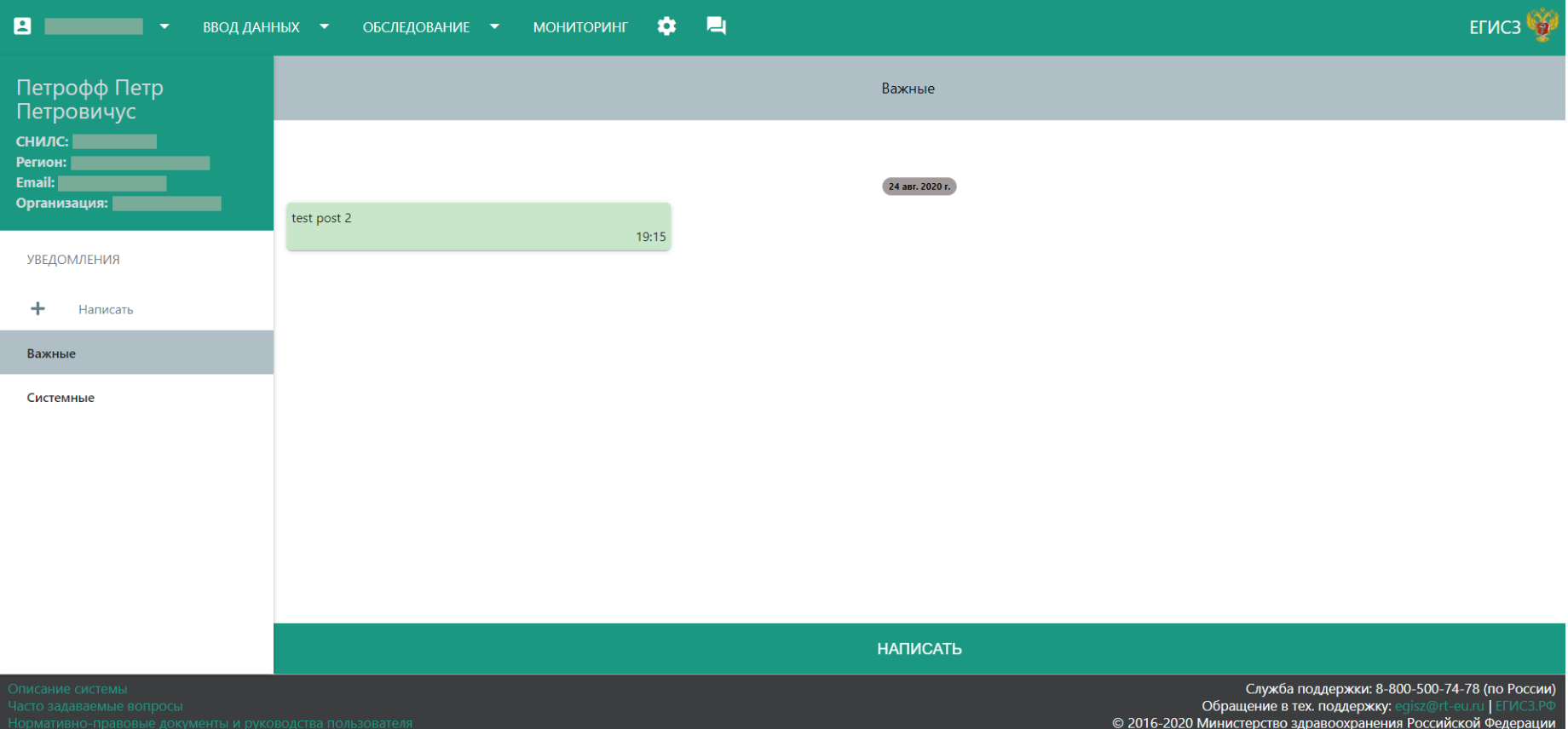 В группу «Важные» поступают уведомления от Службы технической поддержки ЕГИСЗ, а в группу «Системные» – уведомления о действиях в Системе других пользователей-участников по тем процессам, над которыми идет совместная работа.