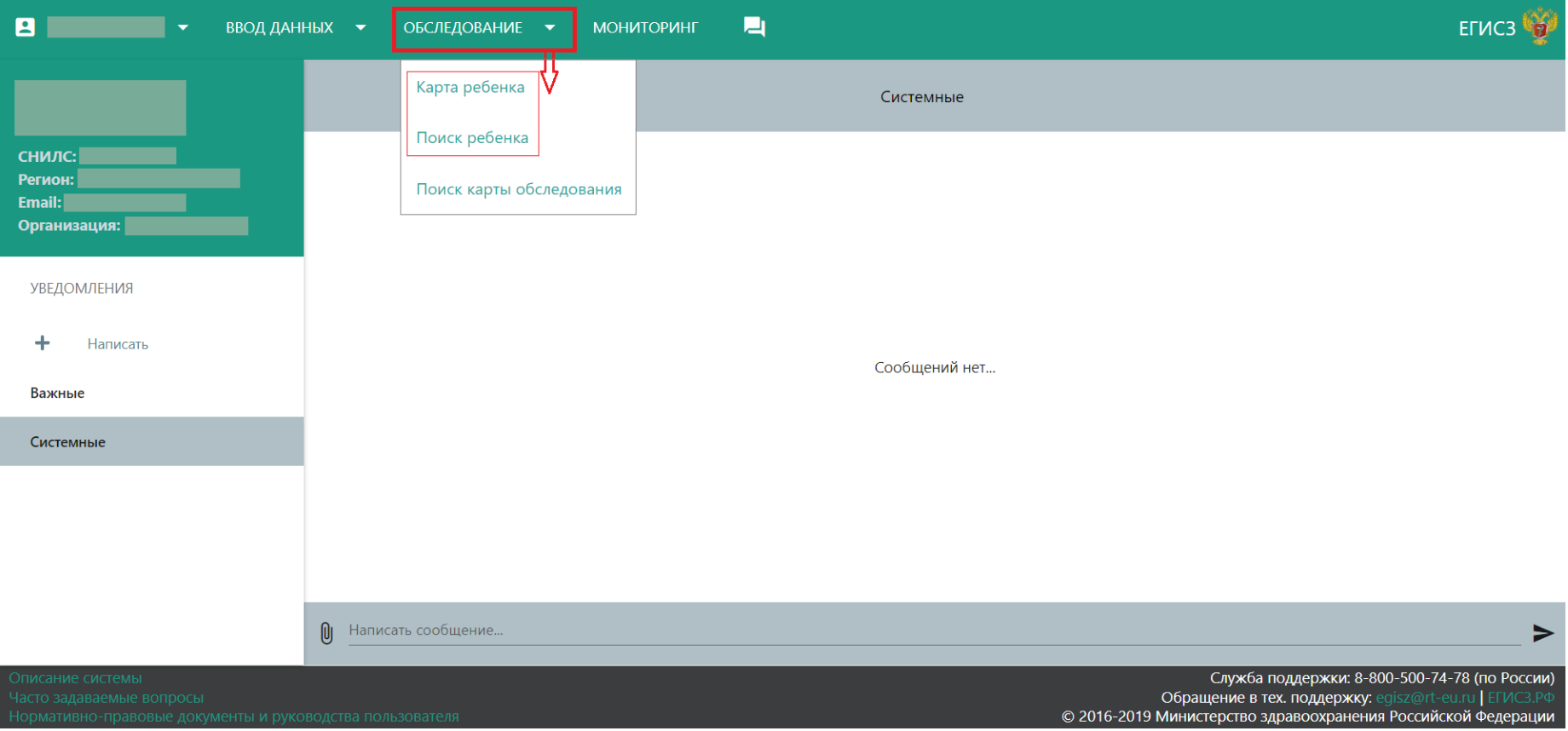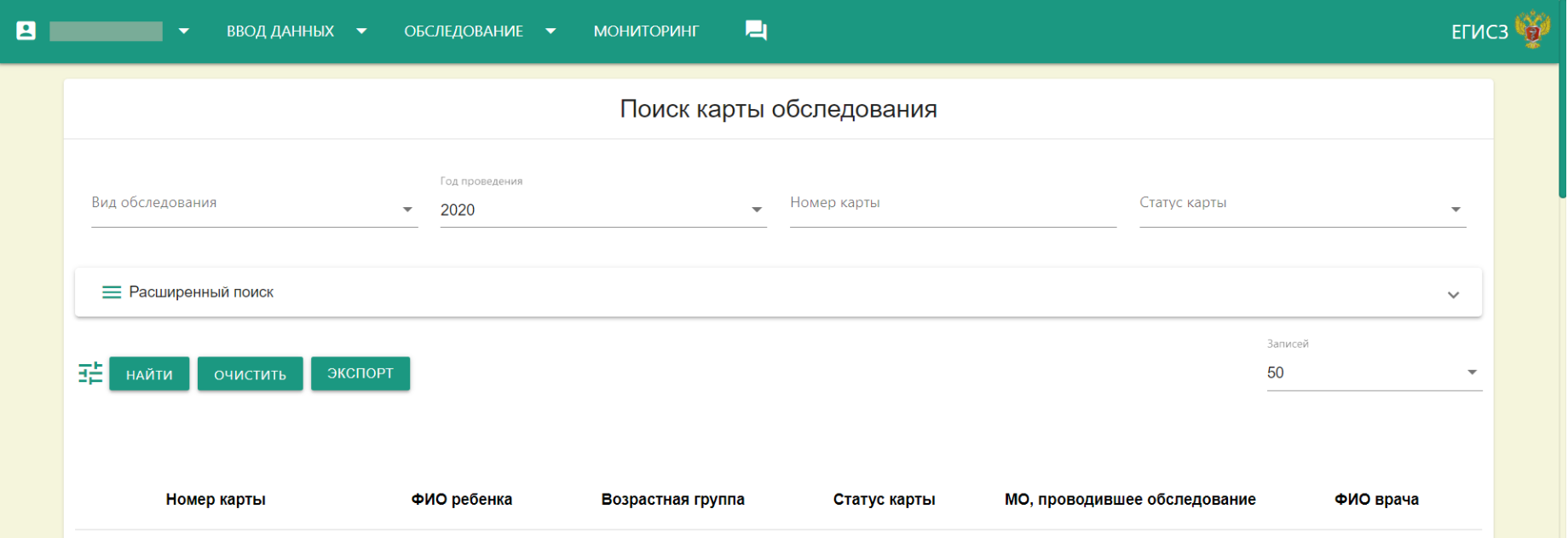 Рисунок 5 – Раздел «Обследование» (Пользователь МО)