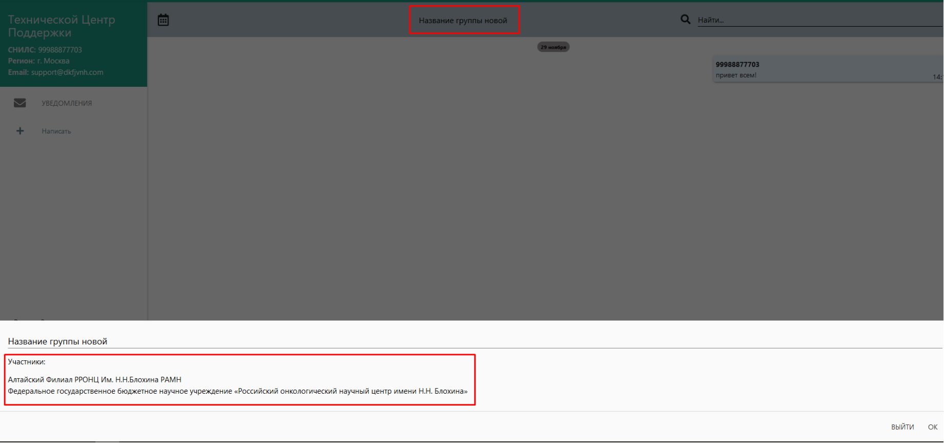 Имеется возможность выбора нескольких организаций при создании нового уведомления, в результате чего будет создана Группа. Созданные группы будут отображаться в левой части экрана.