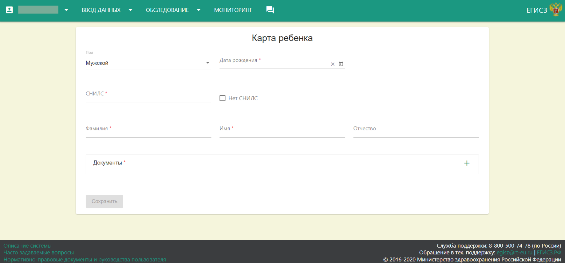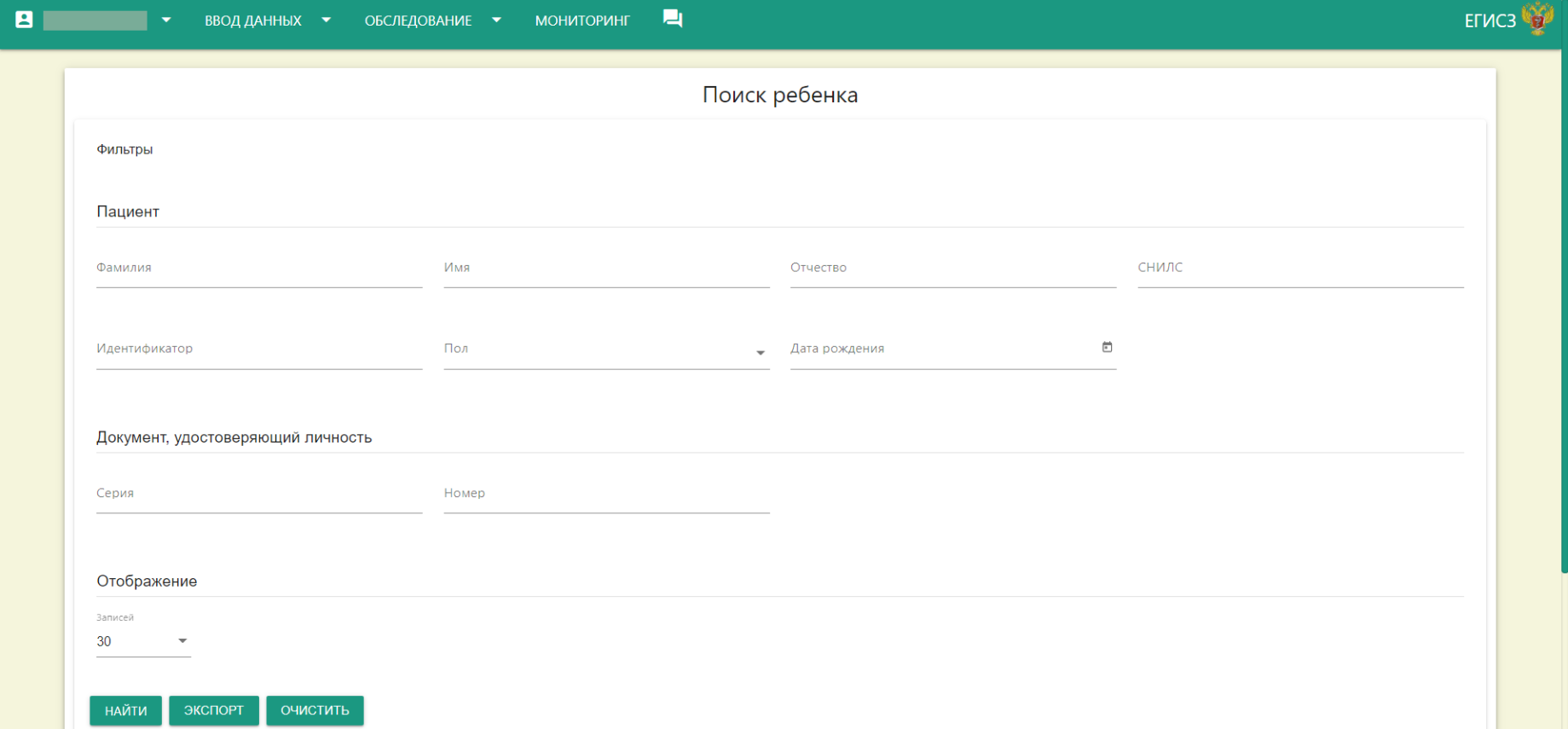 Но, если необходимо найти карту ребенка другого региона, то следует производить поиск карты ребенка, используя комбинацию параметров («СНИЛС»/ «ДУЛ»/ «Идентификатор») + «ФИ» + «Пол» + ««Дата рождения».