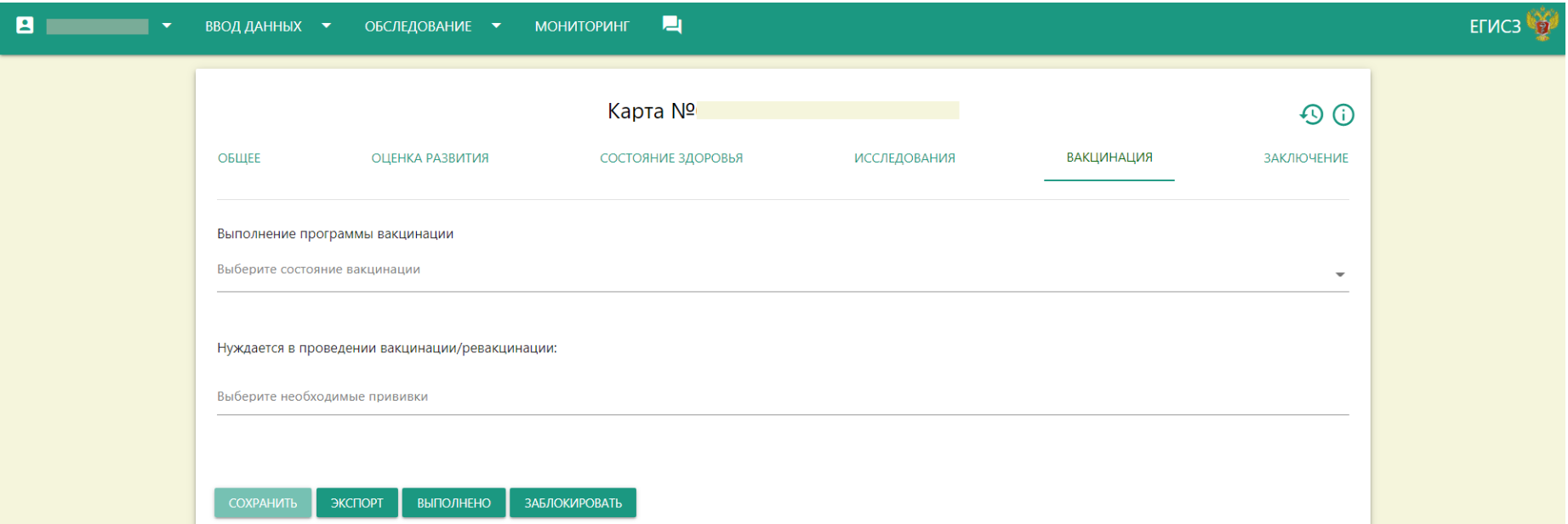 На вкладке «Вакцинация» необходимо заполнить следующие поля посредством выбора значения из выпадающего списка: